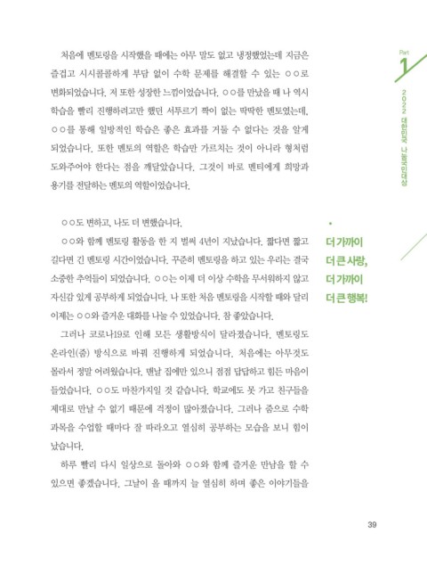 자신감 있게 공부하게 되었습니다. 나 또한 처음 멘토링을 시작할 때와 달리 더 큰 행복!
