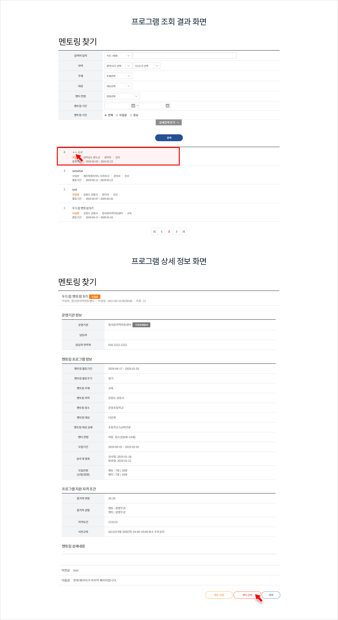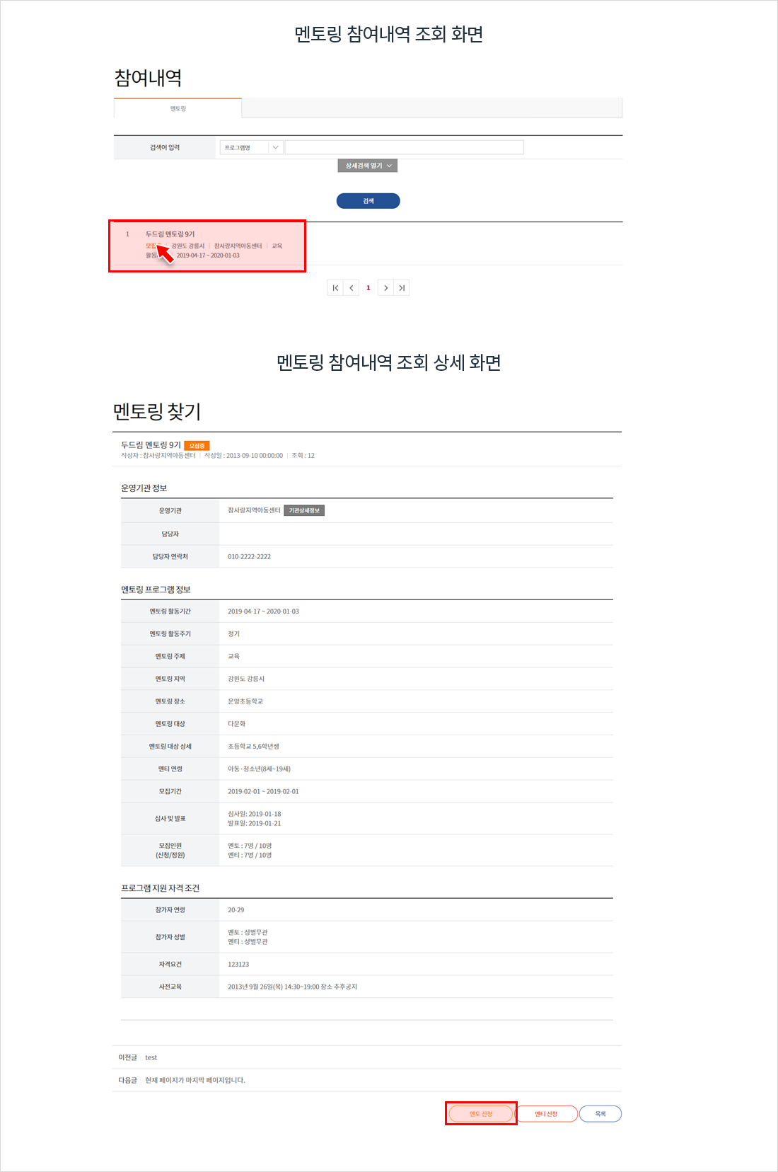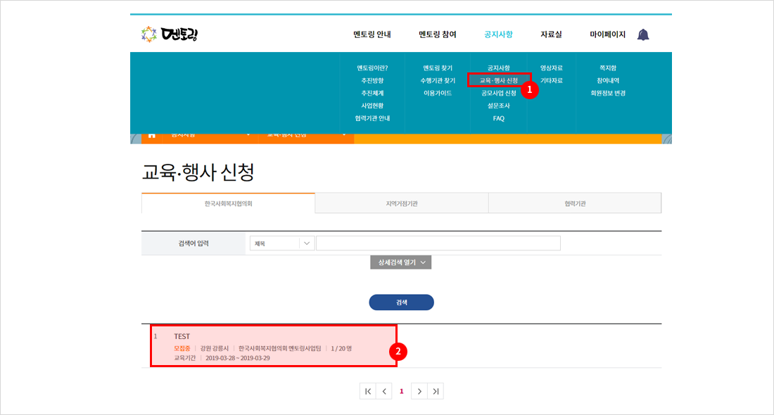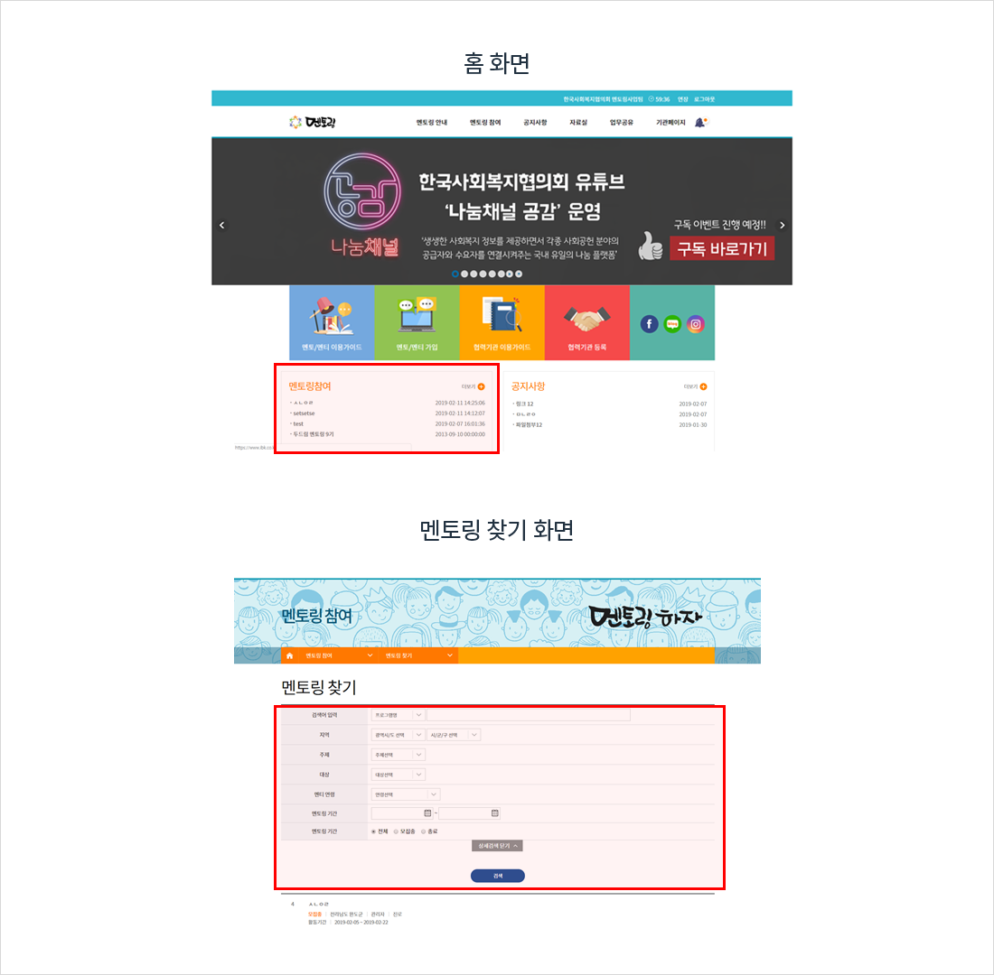 홈페이지 메인화면의 멘토/멘티 가입을 클릭하여 회원가입 페이지로 이동합니다.